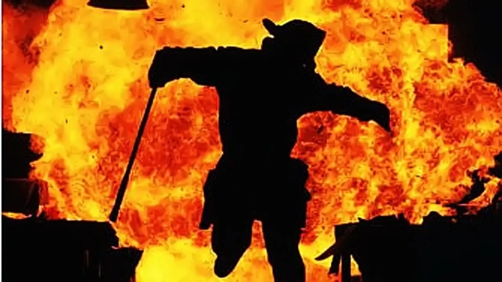 This is known as backdraft. In firefighting terms, this refers to a chemical reaction that occurs when oxygen is re-introduced to a fire with little ventilation, resulting in rapid combustion.